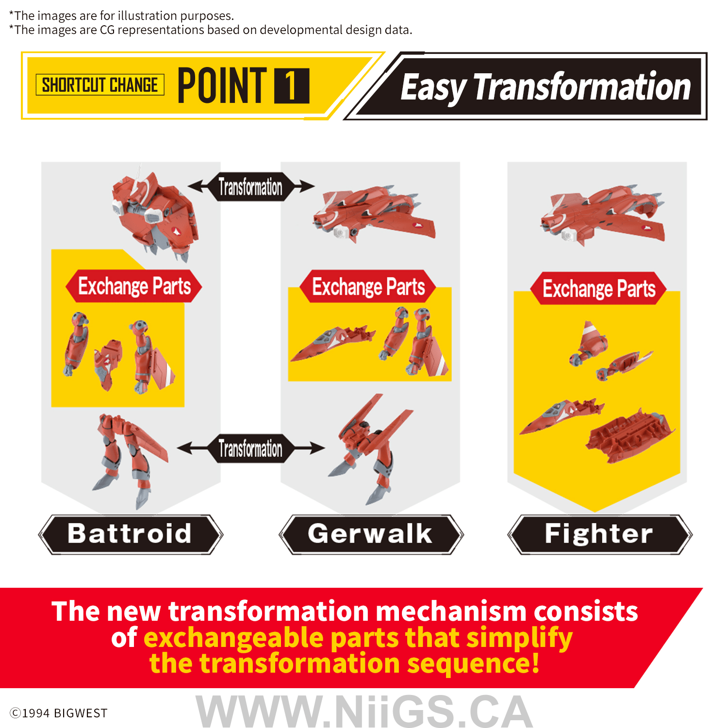 ■「差替三段変形(ショートカットチェンジ)」の採用により、設定画をイメージした各形態のフォルムを追求。