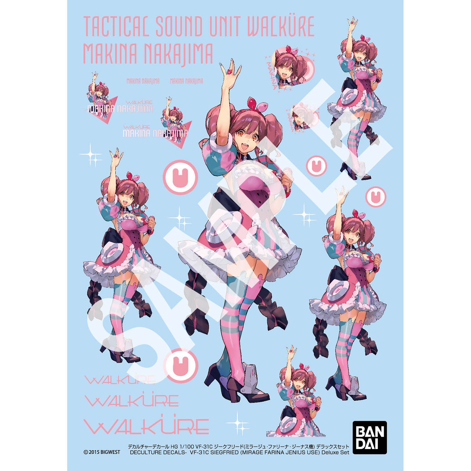 ■『マクロスΔ』キャラクター原案 実田千聖氏(CAPCOM)新規描き下ろしイラストを使用したマキナ・中島の「アクリルスタンド」と「水転写式デカール」が付属。アクリルスタンドの背面には後ろ姿のイラストを印刷。