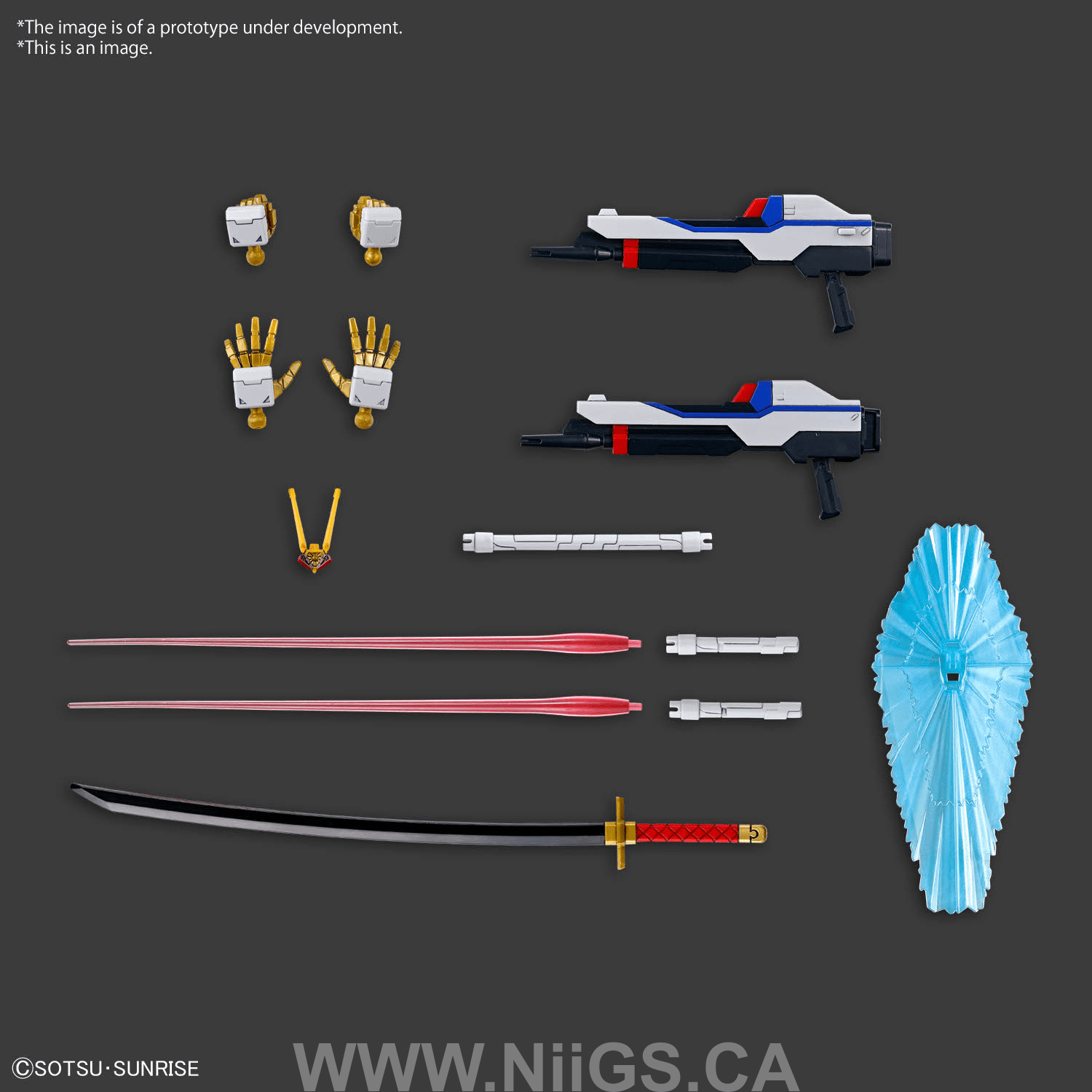 ■ビームサーベルやビームシールドなど豊富な武装のほか、ビームサーベルの連結状態を再現できるグリップも付属。