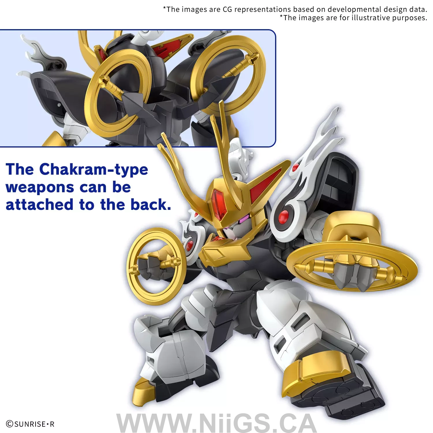 ■チャクラム型の武器は背面に取り付け可能。