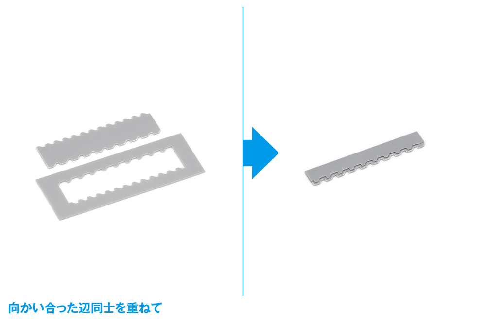 - 連続的な形状をワンタッチで打ち抜く事ができ、パーツの量産も簡単。