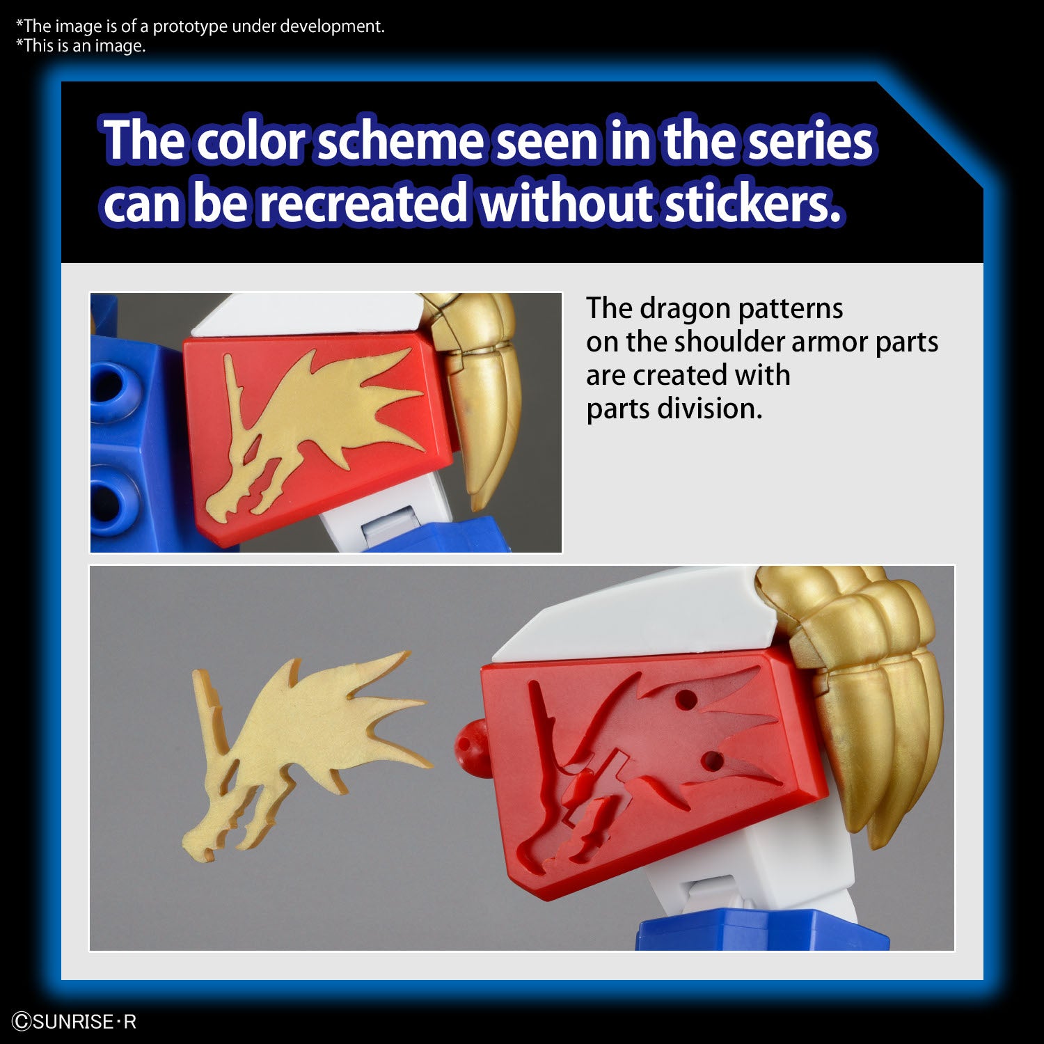 ■シールレスで劇中のカラーリングを再現。肩アーマーの龍の模様もパーツ分割で表現。
