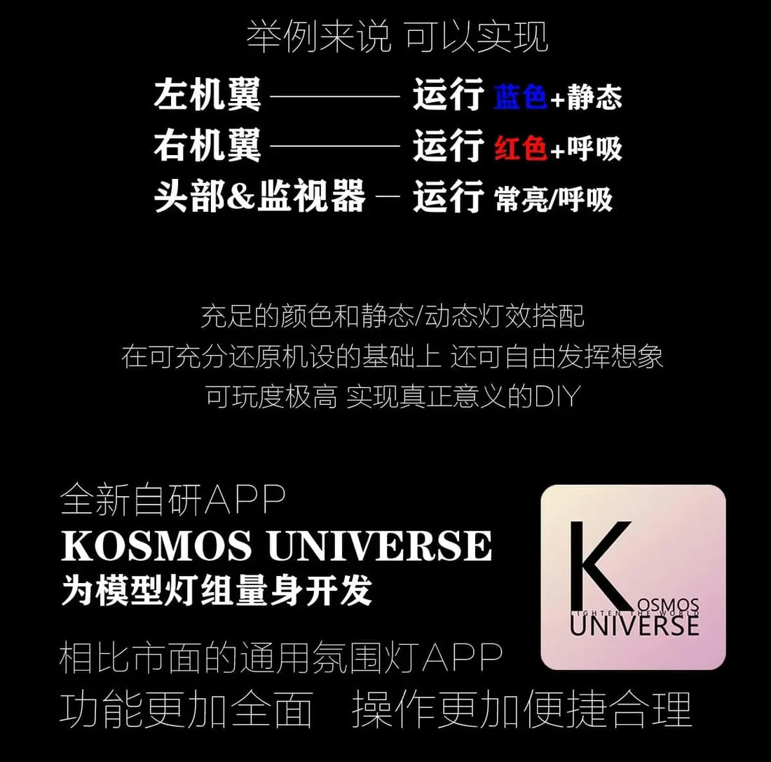 This light set is designed specifically for the 1/100 MGEX Strike Freedom Gundam. Please note, this product includes only the light set and does not come with the model, bracket, or light wing.
