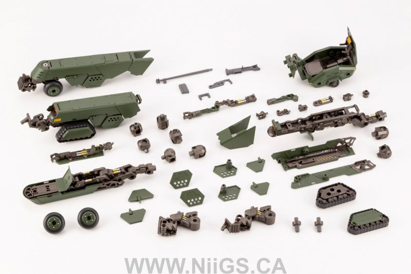 ■By switching out one part from the transport vehicle “Flat Mode,” this model kit can transform into a multi-car vehicle “Polypod Mode.”