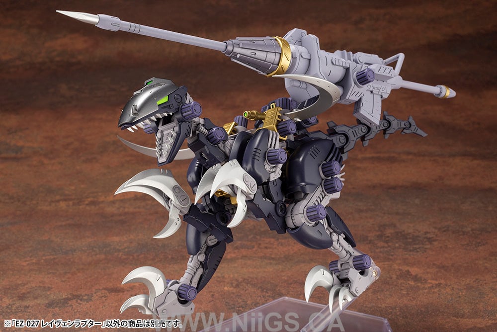 Equipped with a Pile Bunker Unit and new armor, Raven Raptor joins Kotobukiya?s HMM Zoids lineup! This model kit includes large-sized weapons that do not compromise the model's poseability or style. The increased poseability of the head and ''Strike Harken Claw'' leg parts allows users to not only recreate the usual poses, but also allow the model to stand on its toes to recreate a velociraptor-like pose. Be sure to add this Zoid that can take on larger and more powerful models to your very own Zoids lineup! Product Specifications: ?The cockpit hatch on the head can be opened and closed, allowing for a pilot figure to be placed inside. ?The Zoid Core inside the torso can be removed. ?The ?Counter Scythes? on the model?s back includes a pullout expansion feature for users to recreate dynamic poses by adding joints. ?In addition to having a symmetrical design for the left and right side of the upper arms, 3mm connection points are added to the elbows for fans to have the option of adding hardpoints to this model when assembling. ?This model is compatible with a variety of bases through connecting the lower torso parts to 3mm connection points. ?The customization parts Pile Bunker Unit is included as the model?s standard equipment so users can enjoy its firing action and equipping magazines. Additionally, the radar unit can be attached to the side of the model that is unarmed. ?All new emblem and caution mark decals to recreate the world of Zoids are included in this kit.