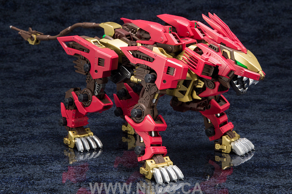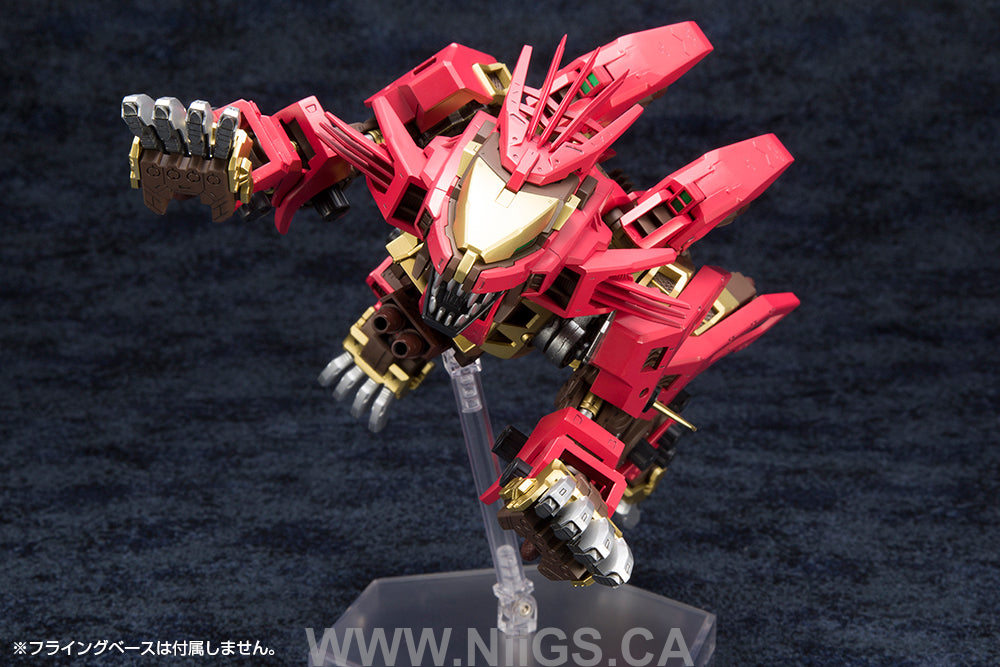 The popular Liger Zero in Kotobukiya’s HMM series is rejoining the lineup in its Empire version with various new decals to recreate the Guylos Empire’s emblems and markings! The standard white color scheme of this model’s silhouette and details are changed to the red and gold of the Guylos Empire. Along with the clear green parts, the kit also includes clear colorless parts as a bonus. The clear colorless parts can be customized with model paint. Add this red Liger Zero designed by the Guylos Empire to your collection today! Product Specifications: ・This model utilizes the ''Changing Armor System'' where each piece of armor is removable from the model. ・The cockpit hatch on the model's head can open and close, allowing a pilot model to be placed inside. ・The Zoid Core inside the model’s chest can be removed. ・The 3mm connection point on the model’s lower torso is compatible with Flying Base Neo (sold separately). ・The extension features on the “Ion Turbo Booster Units” and “Downforce Stabilizers” on the model’s back have been recreated. ・In addition to the clear green parts for the cockpit, colorless clear parts that can be customized with model paint are also included. ・All new emblem and caution mark decals to recreate the world of Zoids are included in this kit