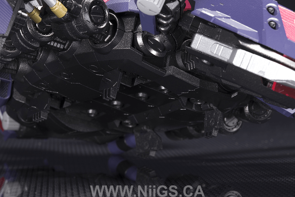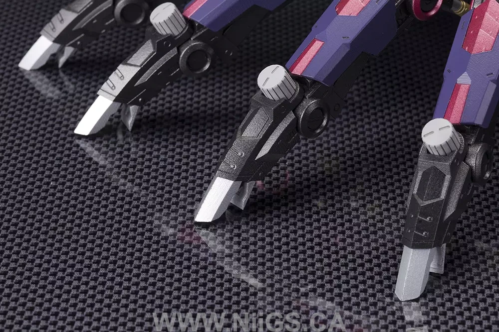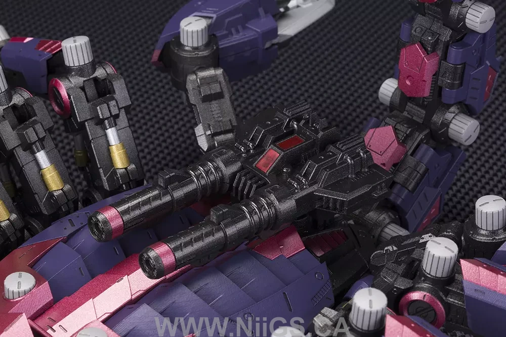 ■ The Charged Particle Cannon is equipped on the end of the model’s long tail. The AZ 120mm Hyper Laser Gun and AZ 120mm Hyper Beam Gun can be deployed, allowing the central barrel to be extended and displayed in action.