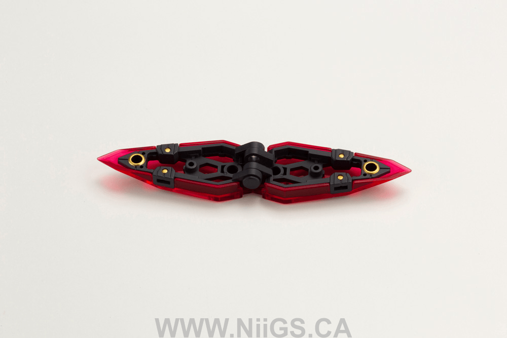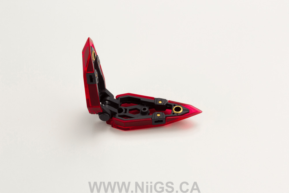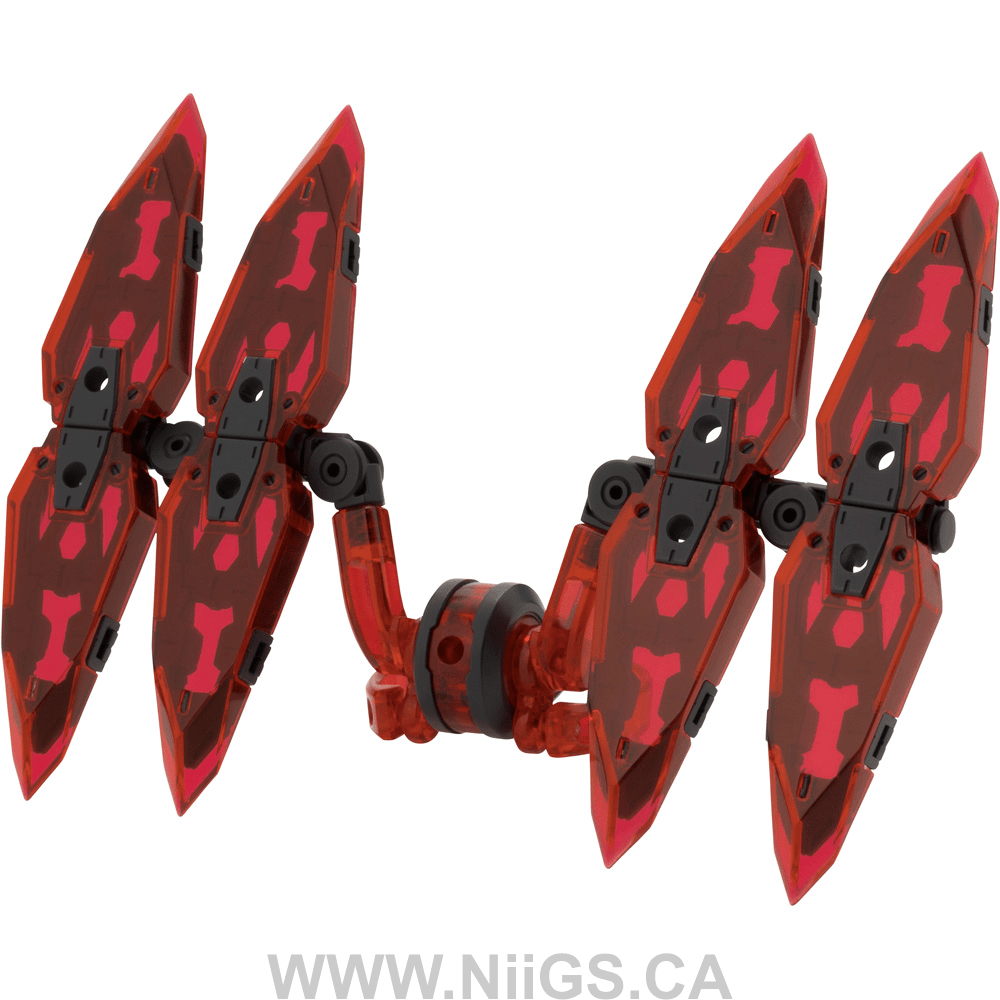 The parts can be assembled in a variety of different combinations such as the beautiful “wing mode” with a sharp silhouette, or “defense mode” as a body-length shield, and can be used to create unique customizations with other kits.