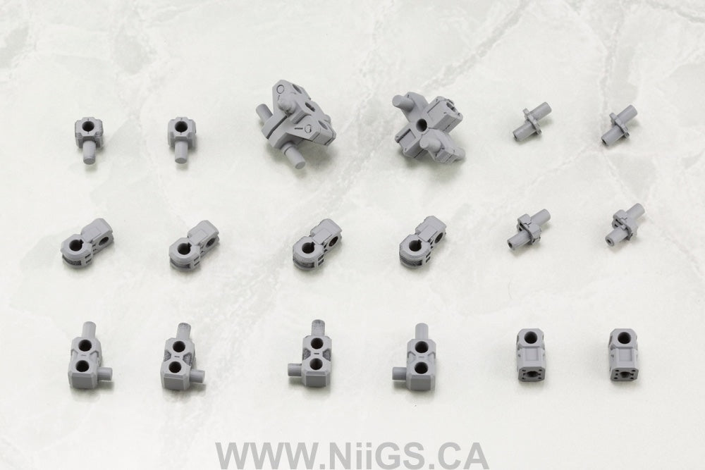 The 3mm connection joints are of the standard type used in Frame Arms, Hexa Gear, Frame Arms Girl, and the Megami Device series for users create countless unique mecha to enjoy.
