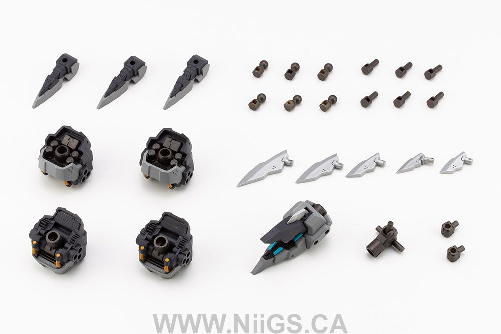 The parts have a mechanical yet organic silhouette, giving them a unique design that makes them easy to use not only with Frame Arms, but with Third Generation Hexa Gear models as well. Try using this unit as an arm, neck, or even a tail part for your next customization.