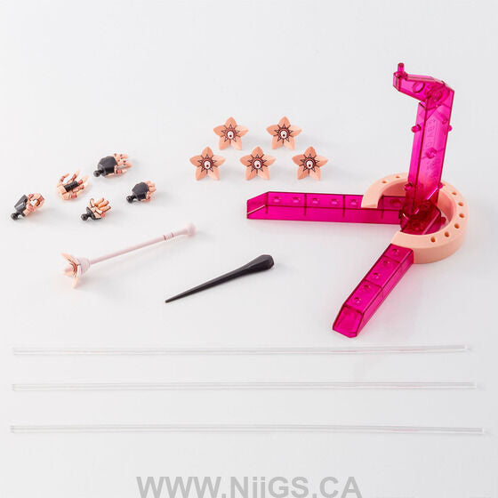Impressive aircraft color based on pink is reproduced with molding color, and specially armed Fawn Falcia baton etc. are attached with new modeling. Includes a display stand that reproduces the trajectory of Falcia Bit when it is deployed and effect parts made of soft material.