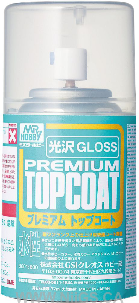 AQUEOUS HOBBY COLOR PREMIUM CLEAR (bottle type) and Mr.PREMIUM TOPCOAT (spray type) is on sale too.